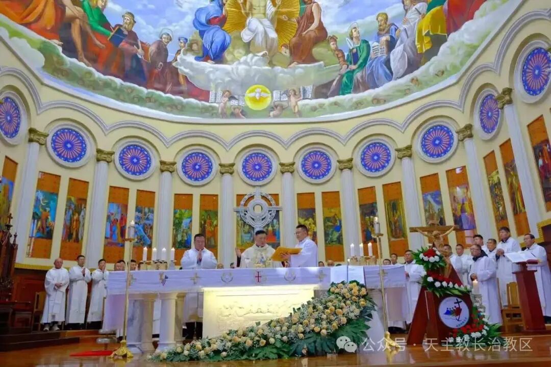 2025年12月28日上午9时,值此圣家节之际,天主教长治教区2025希望禧年闭幕庆典暨圣家节感恩弥撒,在教区主教座堂隆重举行。庆典由丁令斌主教主礼,申学忠神父、高炳隆神父襄礼,教区全体神父、修女及各堂区教友代表齐聚圣堂,共同见证这一神圣而庄严的时刻。