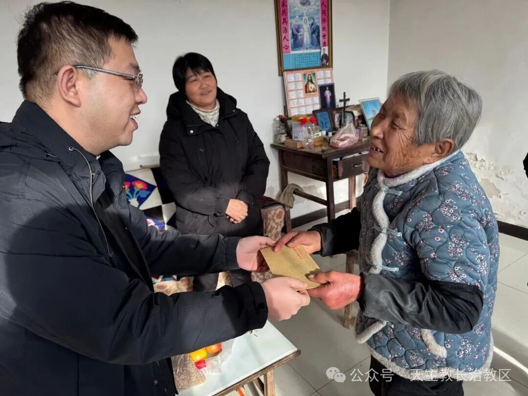每到一户,丁主教都与家属们围坐畅谈,话语间满是温情与关切。他细致询问家人们的身体康健、生活起居,倾听他们的心声与期盼,并亲手递上新春慰问金及慰问品,以真挚的关怀驱散冬日寒意。慰问团成员们一同与家属交流,回溯圣召培育路上的点滴付出,感恩他们以无私大爱滋养圣召成长,用默默坚守为教会发展奠定根基。 “圣召的萌发离不开家庭的沃土,教会的发展离不开家属的奉献。”丁主教在慰问中多次强调,圣召家庭的支持是教会传承与发展的重要力量,教区始终铭记这份沉甸甸的付出。此次慰问不仅让圣召家庭真切感受到教区大家庭的温暖与牵挂,更搭建起心灵沟通的桥梁,进一步凝聚了教区与家庭共促信仰传承的合力。 凛冽寒风中,慰问团的身影穿梭于晋东南的村镇街巷;欢声笑语里,爱与信仰的暖流在彼此心间涌动。长治教区以新春慰问为纽带,既传承了关爱圣召家庭的优良传统,更彰显了教会“以人为本、以爱相连”的初心,为新一年的信仰之路注入温暖而坚定的力量。 上一条:长治教区隆重举行三位执事晋秩典礼